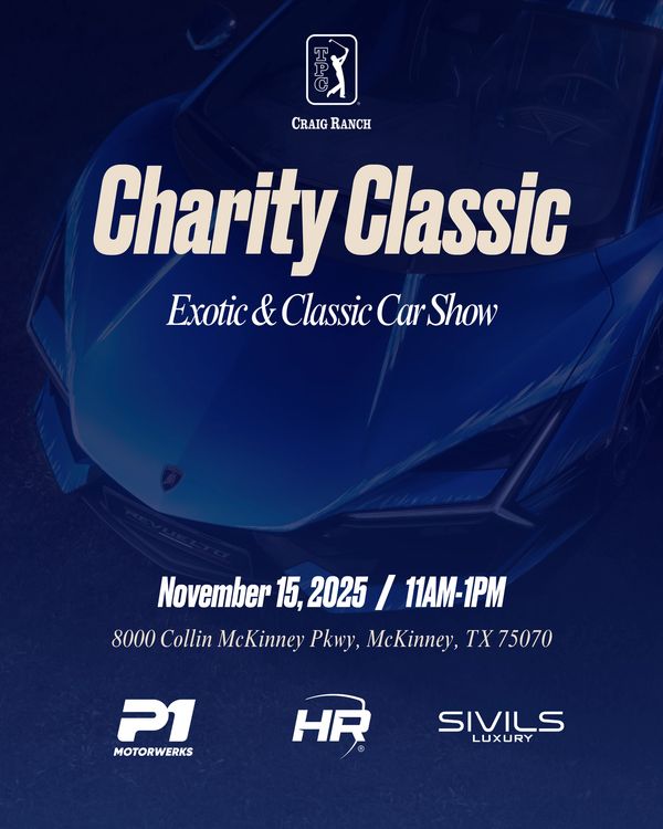 On Saturday, November 15, 2025 from 11AM-1PM we welcome you to join us at TPC Craig Ranch in McKinney, Texas for the Charity Classic! This show is for both Exotics & Classics! We are excited to partner with TPC, P1 Motorwerks, and Sivils Luxury for one amazing Saturday that benefits Cornerstone Ranch and their mission to empower adults with special needs to live an abundant life.